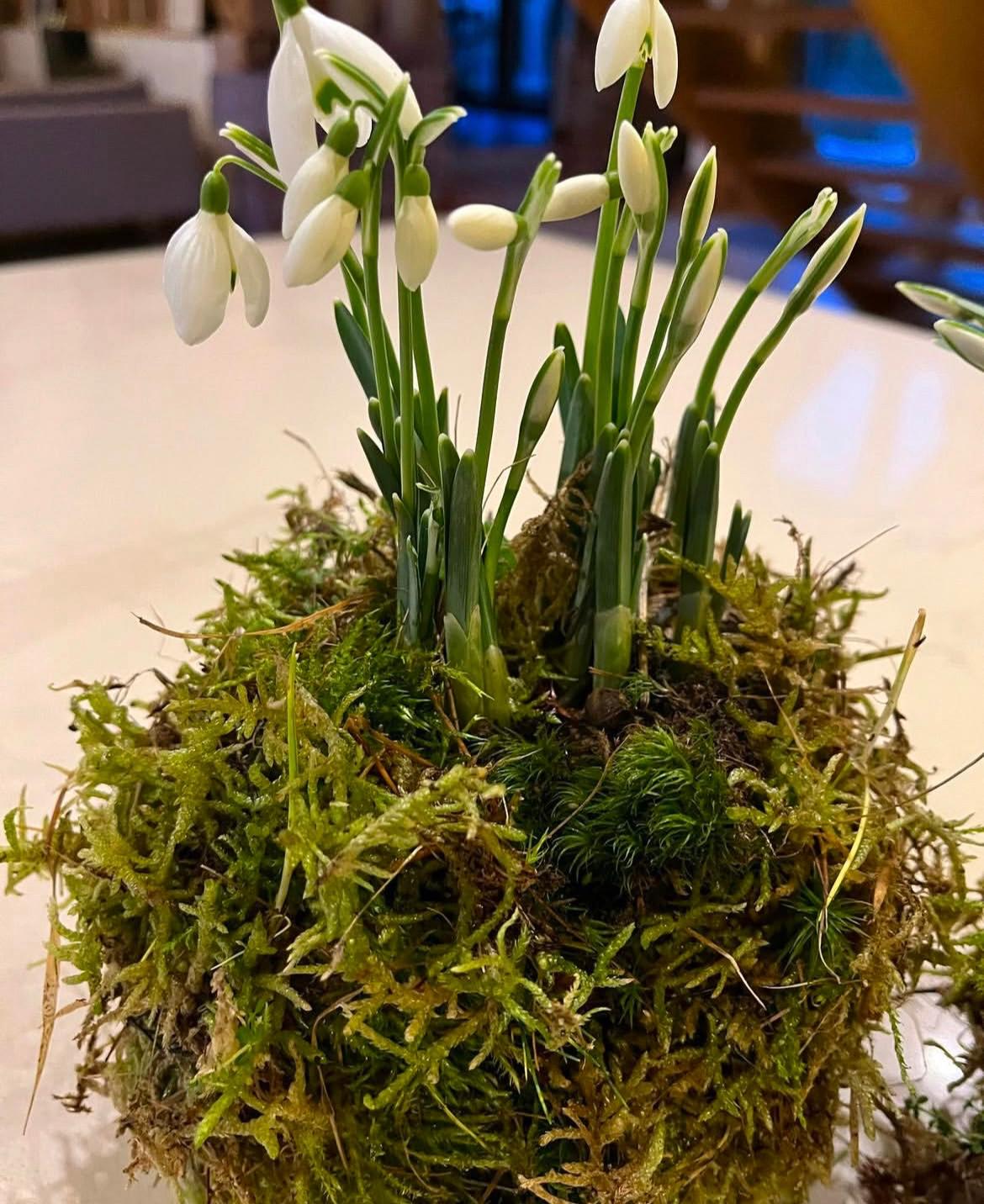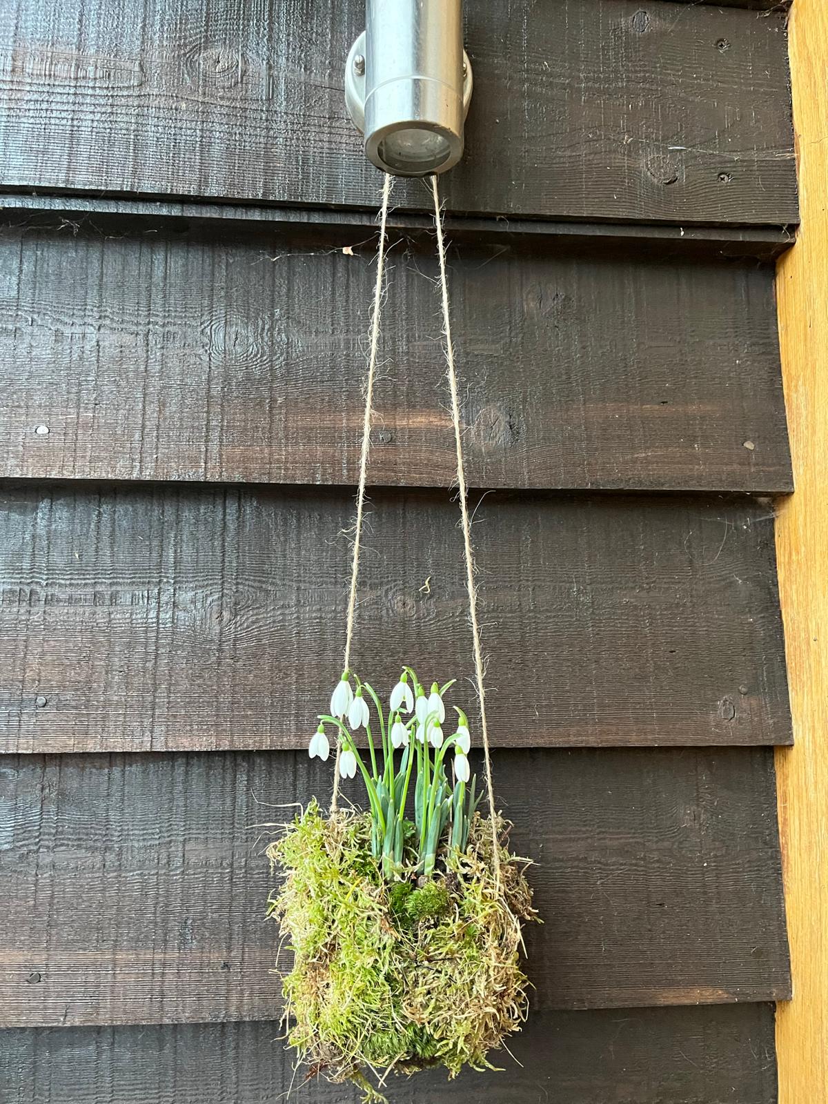 Choose your basket size: £25 (small), £35 (medium), or £45 (large). You have the choice to make a Kokedama Snowdrop Ball for an additional £10. Craft a unique hanging moss ball with delicate snowdrops, perfect for decorating your front door.